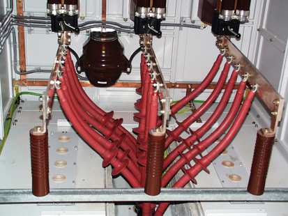 - Plug-in cable termination specified to terminate and connect medium/high voltage cables to MV-HV overhead lines or bus bars to equipment